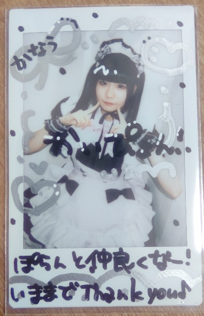 めのかなう!めのさんの提案でそれぞれ思い思いのかなうポーズ。3人が3人とも思い思いすぎて結局かなうポーズとは、ってなりました。結局僕は新旧かなうポーズどちらとも撮らずに終わりましたとさ。実は僕のご主人様人生はこの二人から始まったんですよね。(厳密に言えばたおさん(初チェキ)もなんですけど。)かなうさんにはかいぴょんという名前を、めのさんとは初ご帰宅の日にチェキを撮ってもらいました。僕は「めのかなう生まれ御屋敷育ちぽらん推し」ってヮケ。エモい。