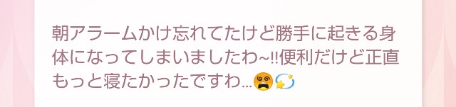 最後の文章はもう泣かせにかかってる。確信犯。こんなん読んだら泣いてまうやん。あんだけあると思ってた2か月という時間も、もう一桁になってしまった。ほんまに寂しい。ぽらんさんが大好きな人たちとお給仕してる姿、もっと見たかったな。OPの時とか、いつも楽しく嬉しそうにしてる姿、ほんまに大好き。